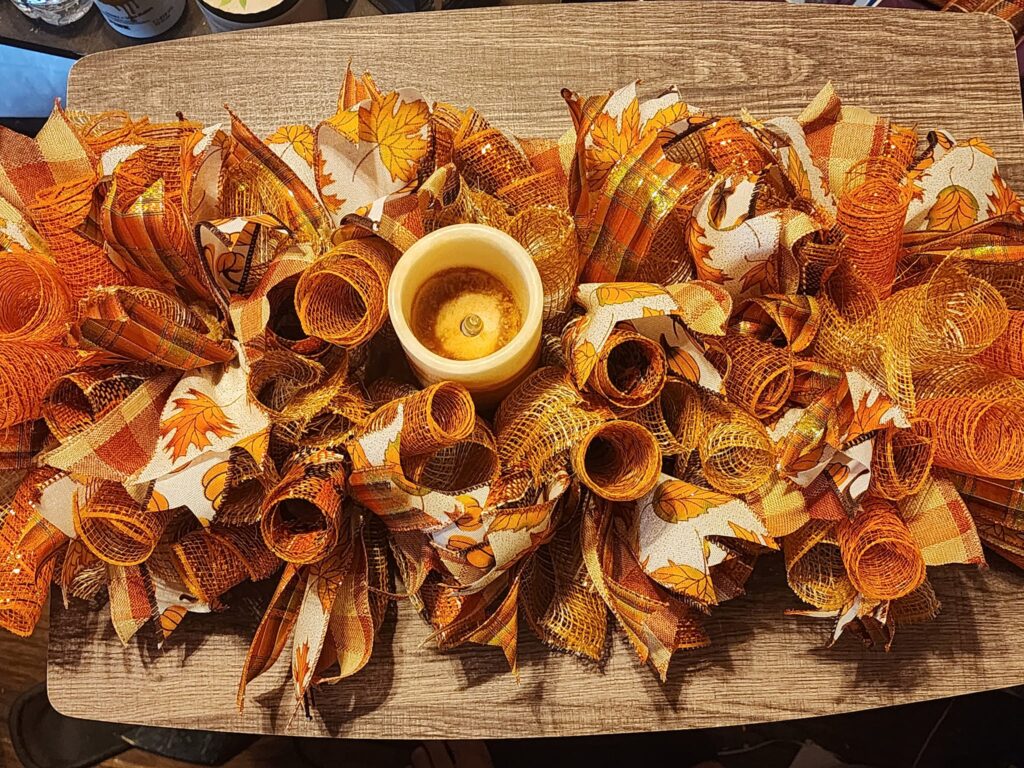 Fall Swag Wreath with Spot for Candle Placement – $25