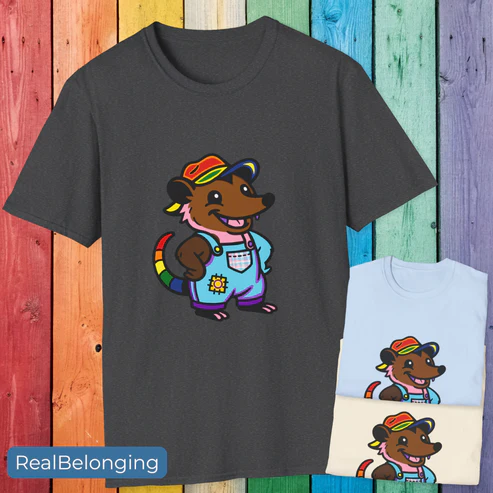 Adorable AF Rainbow Progress Pride Possum T-Shirt | Hillbilly Queer Critter