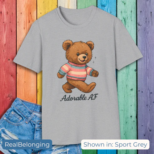 Adorable AF Teddy Bear in Blue & Pink Sweater T-shirt