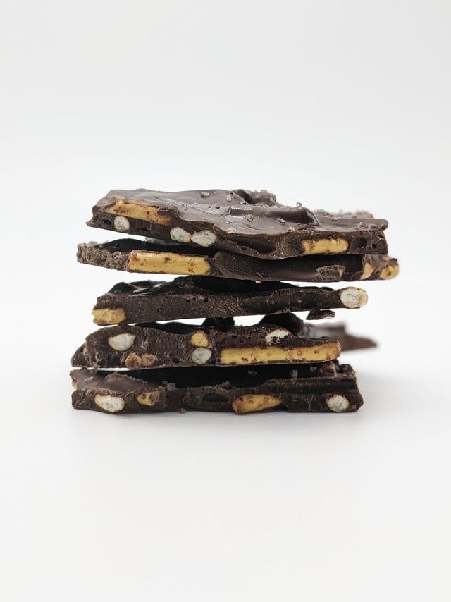Cookies & Cream Chocolate Bark, S'Mores Chocolate Bark, Dark Pretzel Chocolate Bark, Dark Almond Chocolate Bark, Rocky Road Chocolate Bark, Milk Crunch Chocolate Bark, Milk Peanut Chocolate Bark, Hazelnut Crunch Chocolate Bark