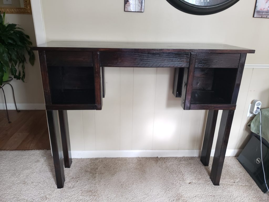 I build custom furniture and wood crafts in my free time while working as a Physical Therapist. It started when my dad helped me build a few things for my apartment, and my Memo (grandma) let me have some of my Papa’s tools. I use mostly wood and have made side tables, entry tables, desks, entertainment centers, dog kennels, armor stands, and more. Most of my furniture is considered to have a farmhouse look. I have also restored park benches and patio gliders, replacing some wood slats and the hardware holding them together, matching the look close to the original. I recently added a laser engraver to my shop and am starting to work on some fun crafty projects with that as well. I would love to be a part of your next project!