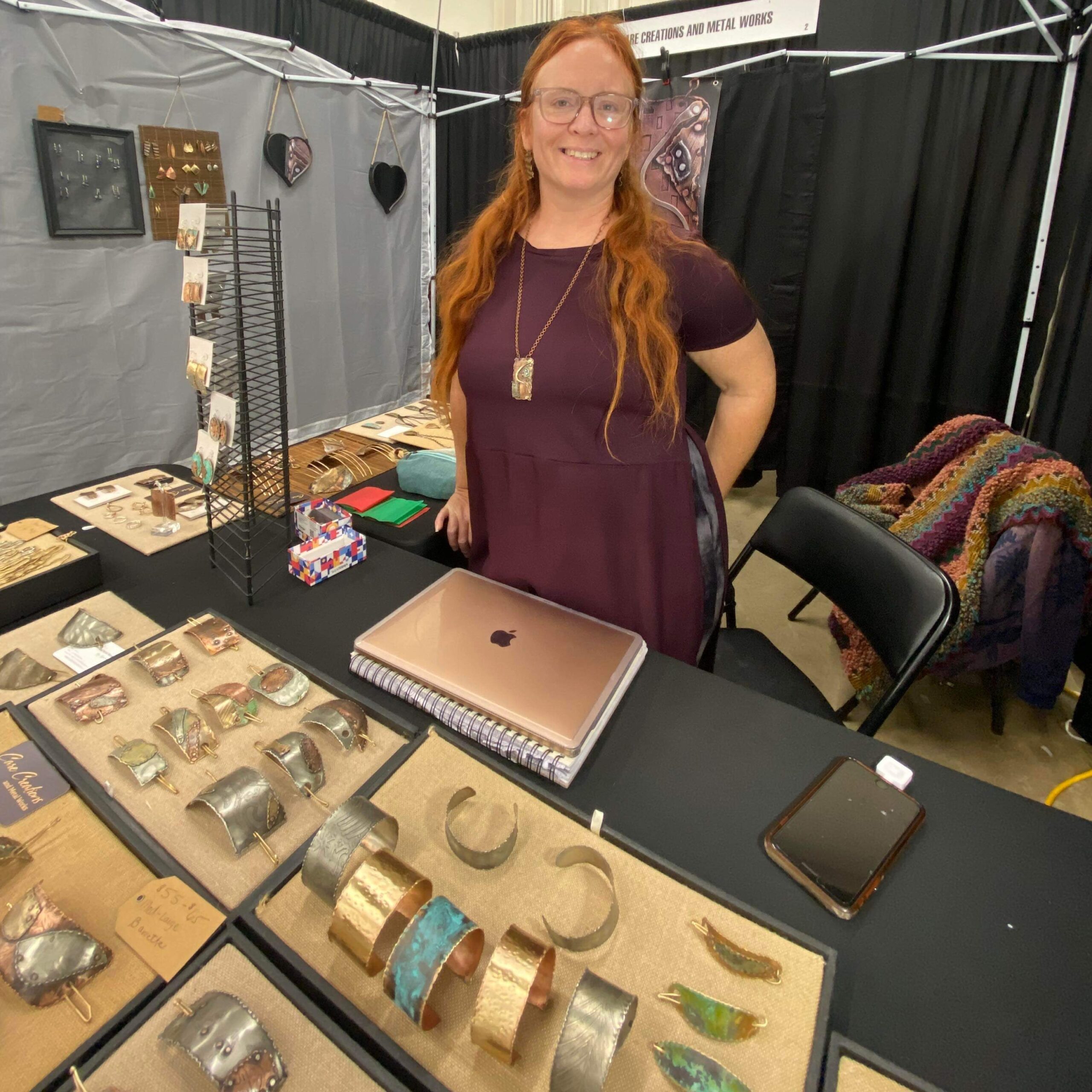 I am Amy Fitzpatrick. I live in Yellville AR in 10 acres of land. I live near the Bufflo River I enjoy getting outside doing garden work and love to go out dancing. I got into a metal apprenticeship about 3 years ago and I love doing art shows. I can’t wait to create and travel this summer.
