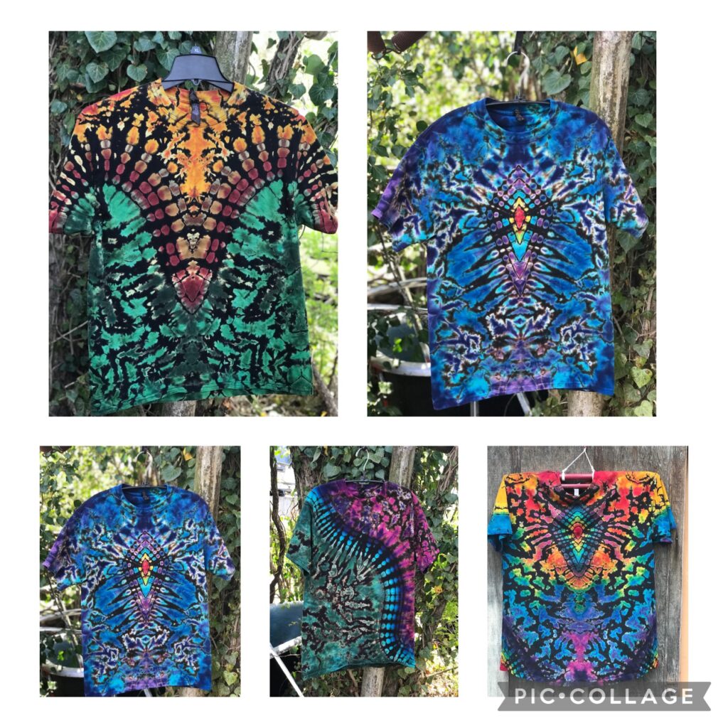 Hi my name is Rachel and I’ve been making Tie Dye’s in Northwest Arkansas since 1987. Nothing makes me happier than to be in my studio playing with colors and techniques. I sell a variety of garments, a little something for everyone in the family including your dog.