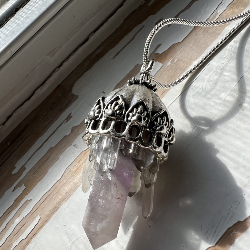 We are a couple that makes unique and beautiful gemstone jewelry. We have been told that our necklaces look like mini chandeliers. We offer custom orders (specially chosen gemstones for intentional healing) and wholesale orders as well as already made necklaces. We also offer hand dyed silk strip necklace chains that can be tied around the neck, and are super comfortable to wear. Find us on TikTok and instagram at @jorroria_art !!