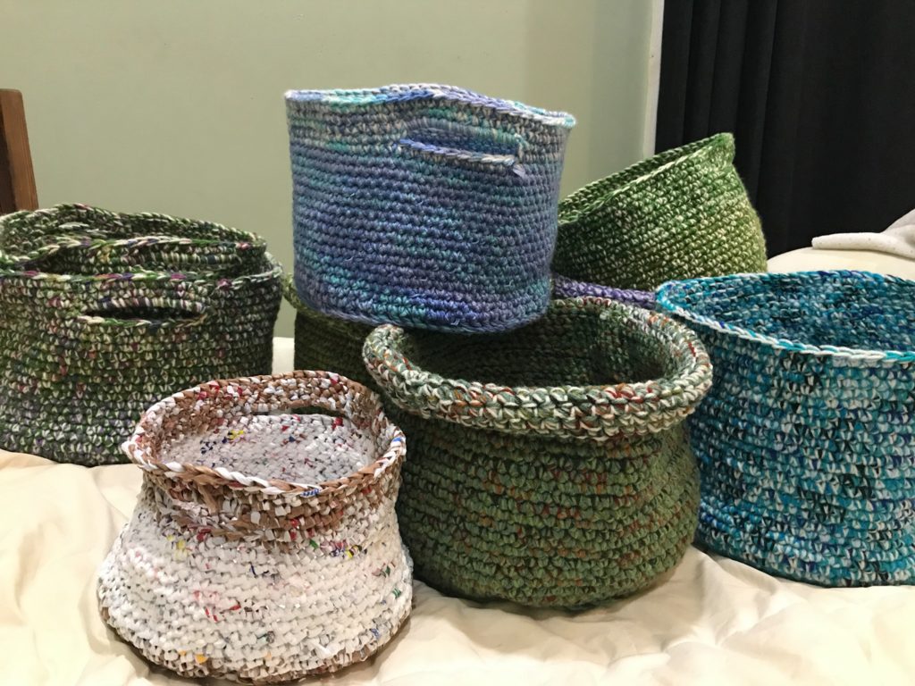 I am a maker of things I like. Crocheted baskets, cat beds etc… and apothecaries. For my apothecaries I use as organic, vegan and ethically sourced raw goods when possible. I only use natural essential oils, there no synthetic or artificial flavors in my bath and body products. I am currently enjoying crocheting bags and objects from Plarn (yarn made by recycling plastic grocery bags)