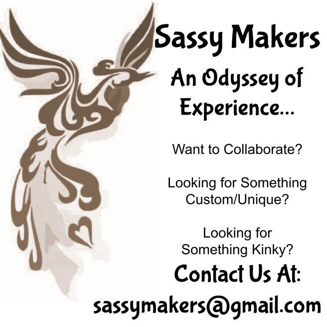 At Sassy Makers, we look to make creative ideas come to life. Whether it be wood, leather, vinyl, 3d filament, soaps, candles, stickers, lamps, clocks, kinky tools/toys/clothing, or something else altogether, let’s take your idea and run with it. It brings us greater joy to bring our and other’s ideas to life, than to create the same things over and over and over and over again. So bring it on and we’ll have some fun.