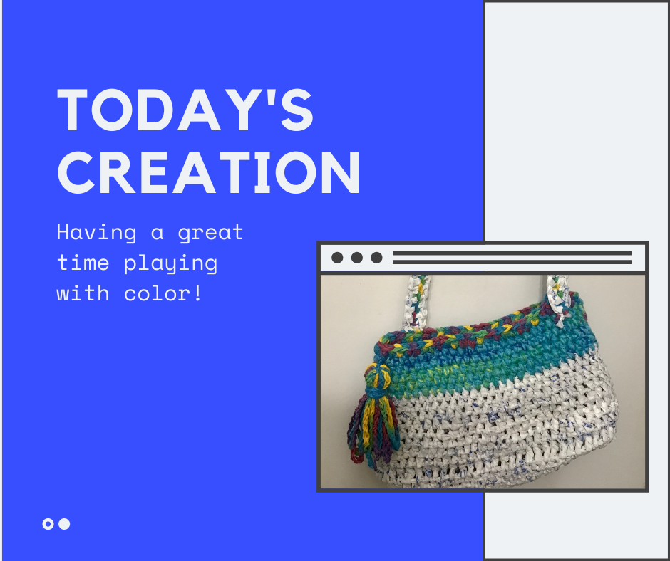 I call what I do up-cycled Grandma crafts. I am primarily known for my market bags made from recycled grocery bags and other up-cycled materials. I have been crocheting and selling my products for about 7 years and selling them at the Farmers Market and regional craft shows. I often work with denim and felt items as well. And during the Christmas season I offer handmade ornaments.