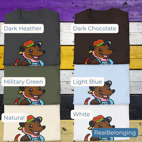 After 10+ years of consulting in Inclusion and Belonging (www.realbelonging.org), Brandyn saw the need for tangible joy, identity affirmation, and ways to remind one another we are not alone amidst the storms of chaos. They began drawing a hillbilly possum in transgender coveralls one day and immediately knew the world needed more of the joy that adorable little critter gave them. Thus was born: RealBelonging.shop.