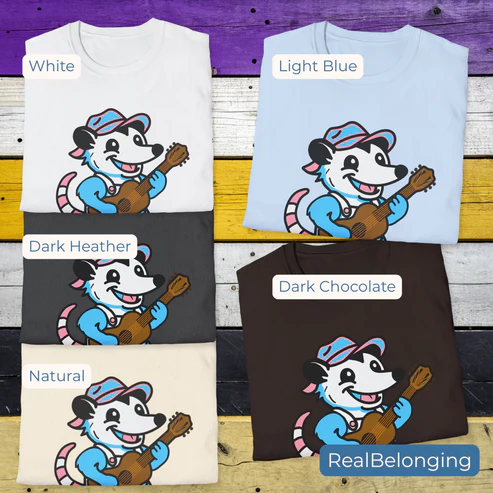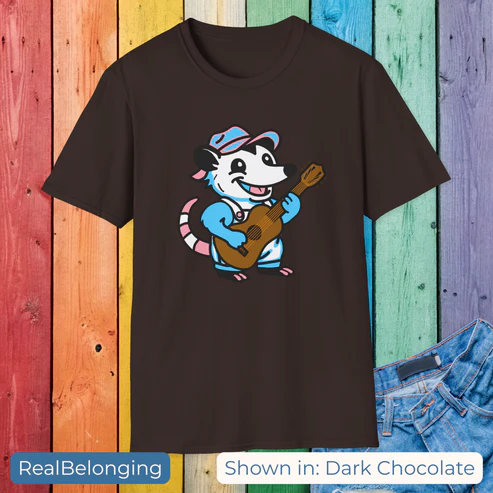 This 100% ring-spun cotton Adorable AF Trans Possum Guitar shirt is soft armor to cushion a hard world. Whether you’re bringing this possum friend home for yourself, or as a gift for a friend, you are sure to bring quality music and comfort into your life with this tee.