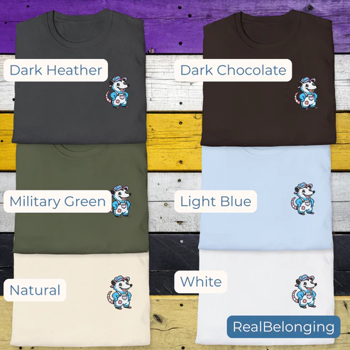 After 10+ years of consulting in Inclusion and Belonging (www.realbelonging.org), Brandyn saw the need for tangible joy, identity affirmation, and ways to remind one another we are not alone amidst the storms of chaos. They began drawing a hillbilly possum in transgender coveralls one day and immediately knew the world needed more of the joy that adorable little critter gave them. Thus was born: RealBelonging.shop.