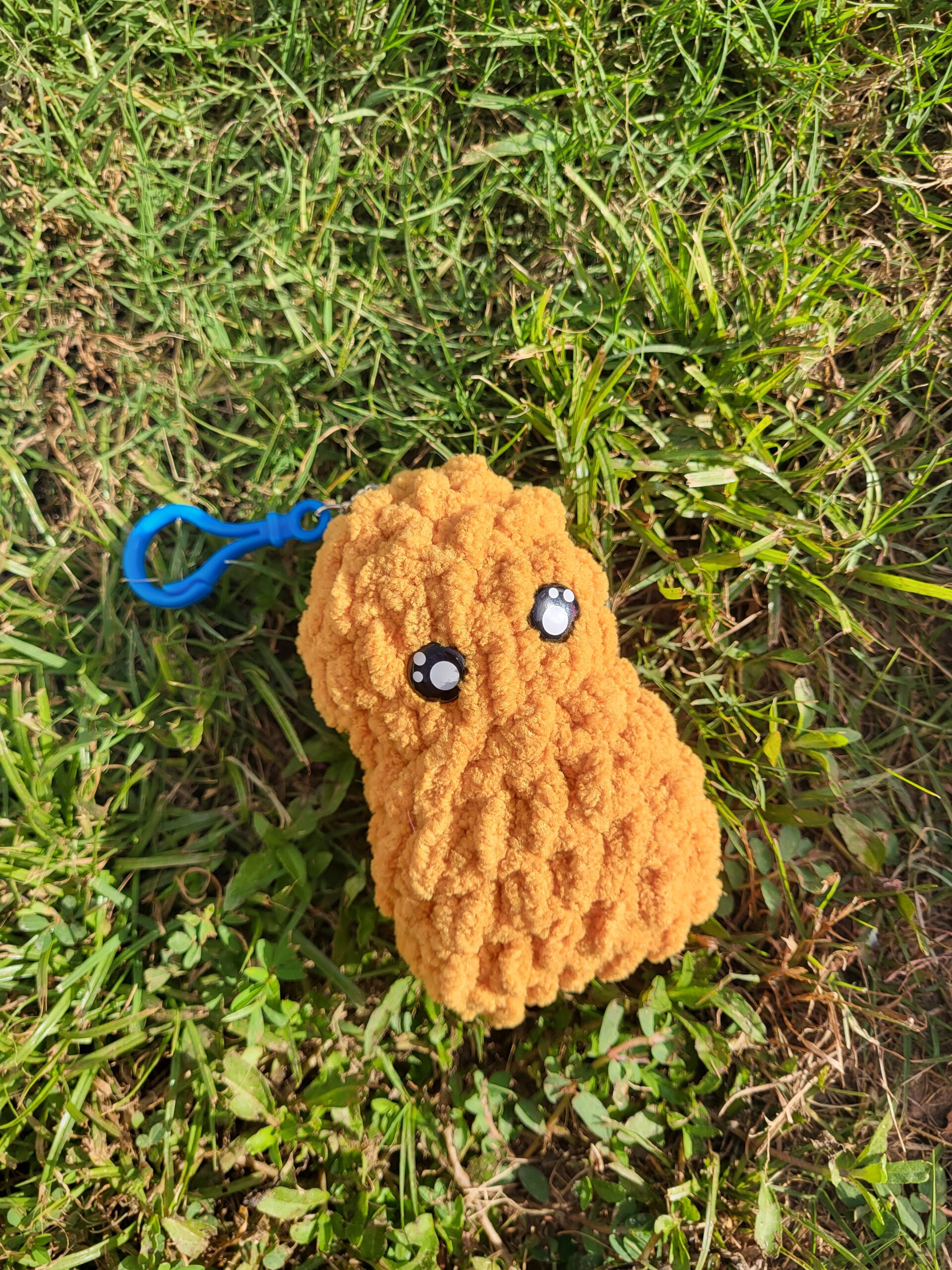 This chicken nugget is the perfect addition to your backpack, plushie stash, or as a gift to a friend!! It features safety eyes and a clip keychain!