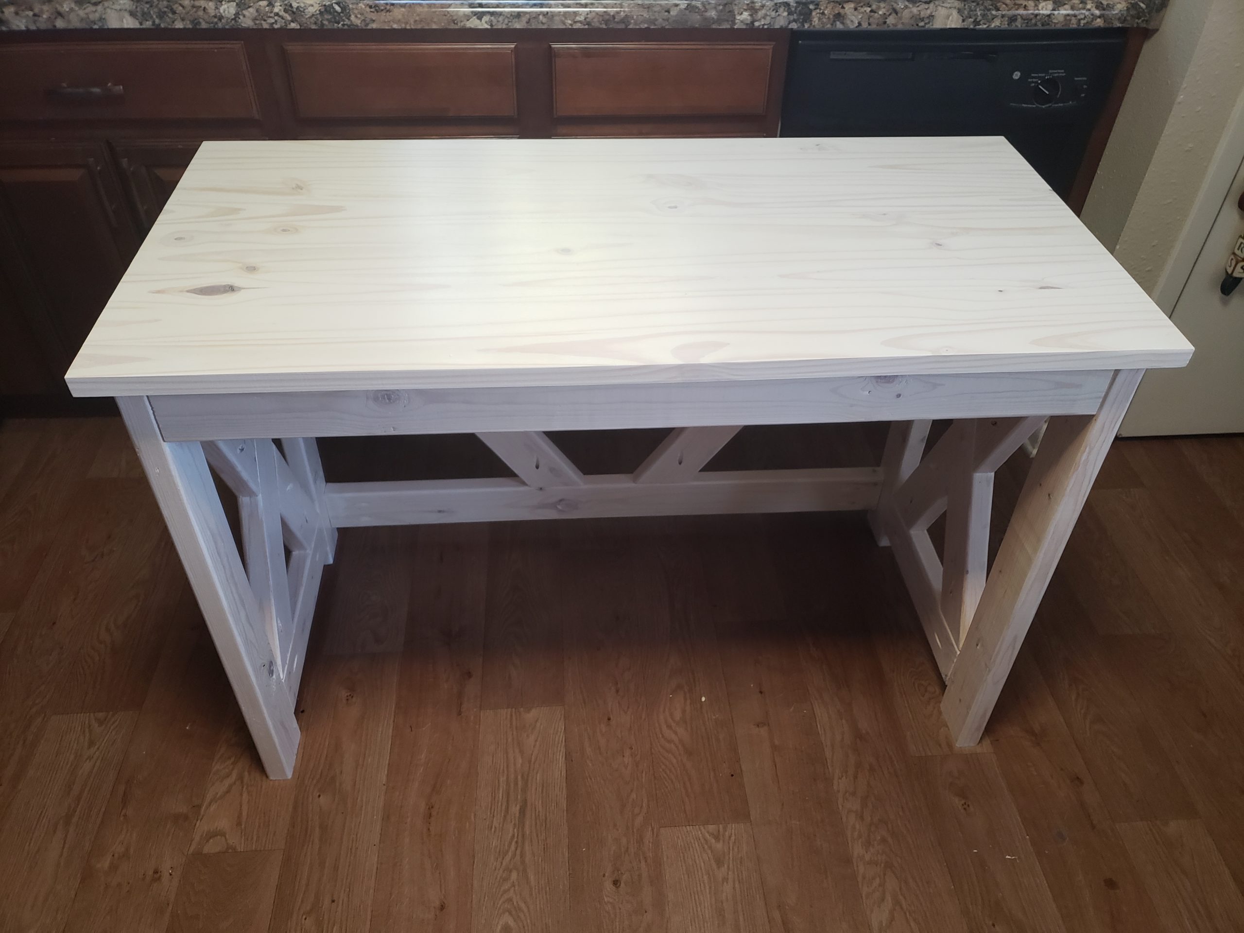 This is a desk finished with a whitewash and acrylic coating. It can be custom sized to fit your needs.