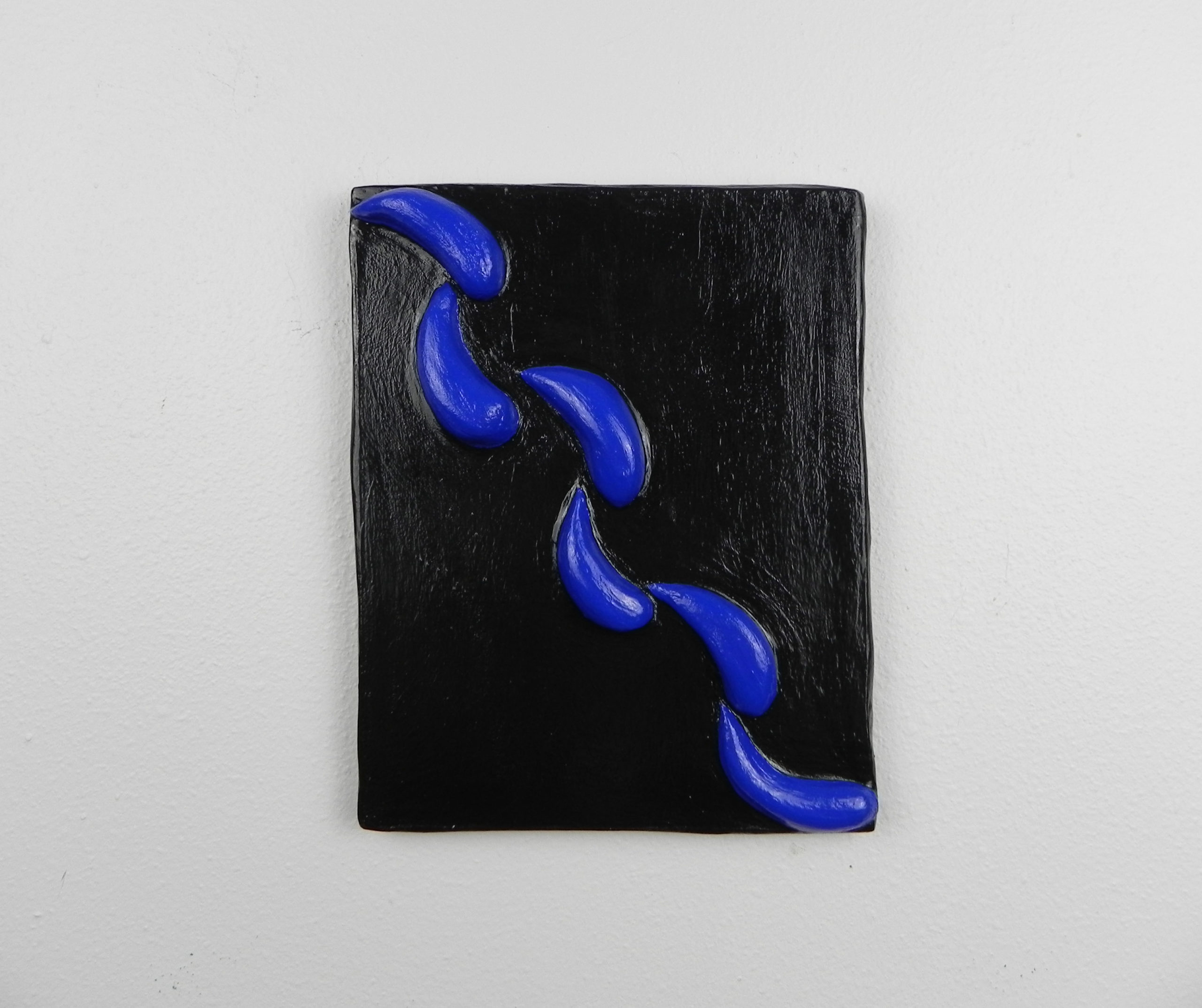 Droplets is hand sculpted, acrylic on joint compound sculpture with brilliant blue water droplets cascading down a high gloss black background. It is bold and speaks loudly! Measurements are 8.75″ x 7″ x 1″ which is smaller than some of my pieces but will grab anyone’s attention as they walking to the room! It comes ready to hang with a D rings and wire in order to hold it snugly and securely next to the wall. Professionally wrapped for safe transit, all sculptured pieces ship Priority mail.