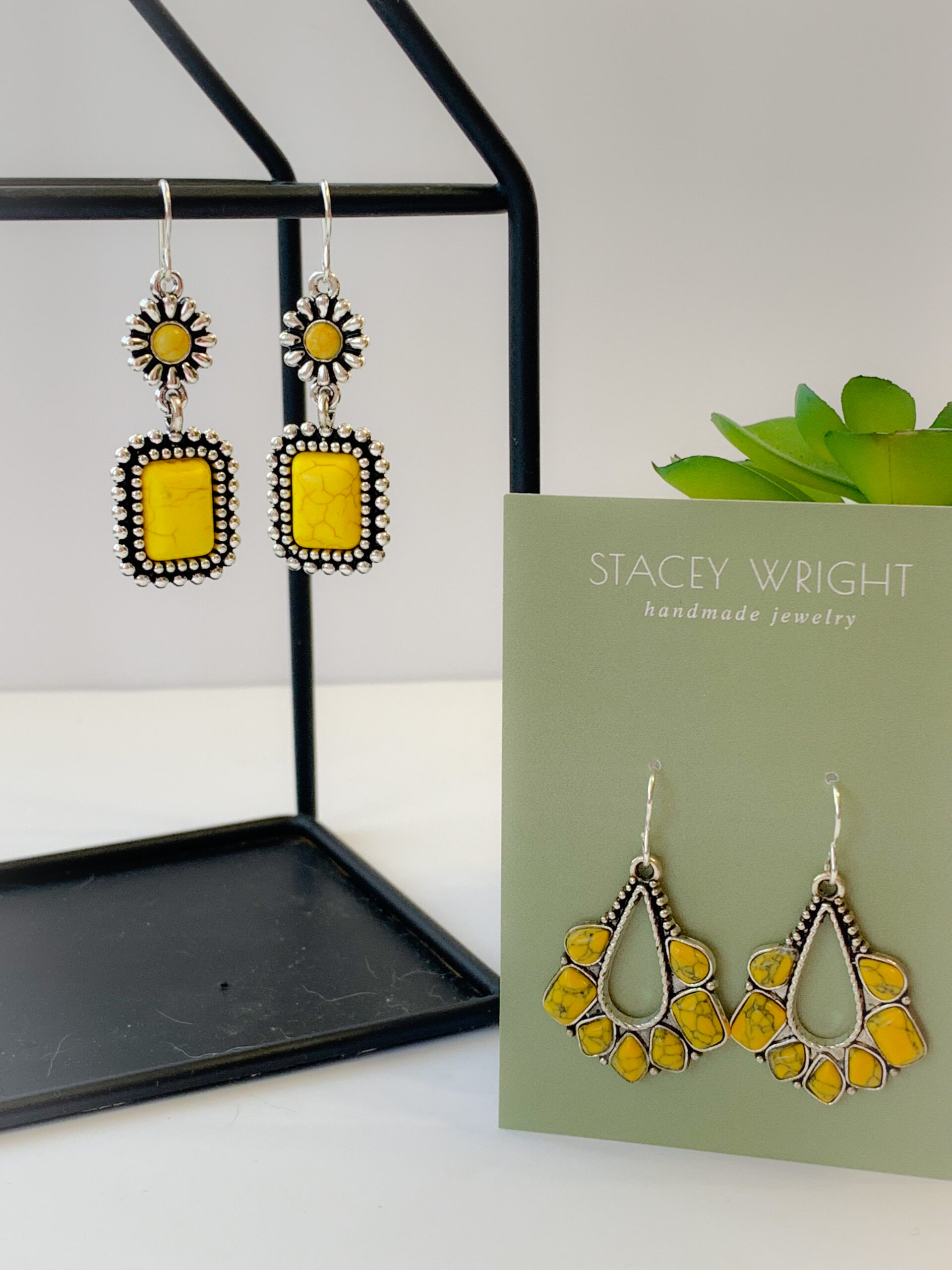 Beautiful yellow and silver dangling earrings. They are light weight and nickel free. Perfect for spring or summer.