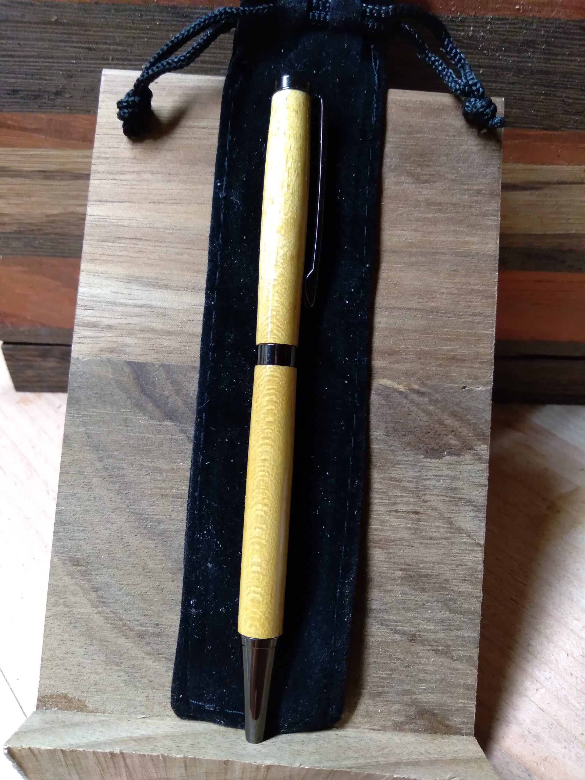 This is a handmade pen using yellow heart which is an exotic hardwood.