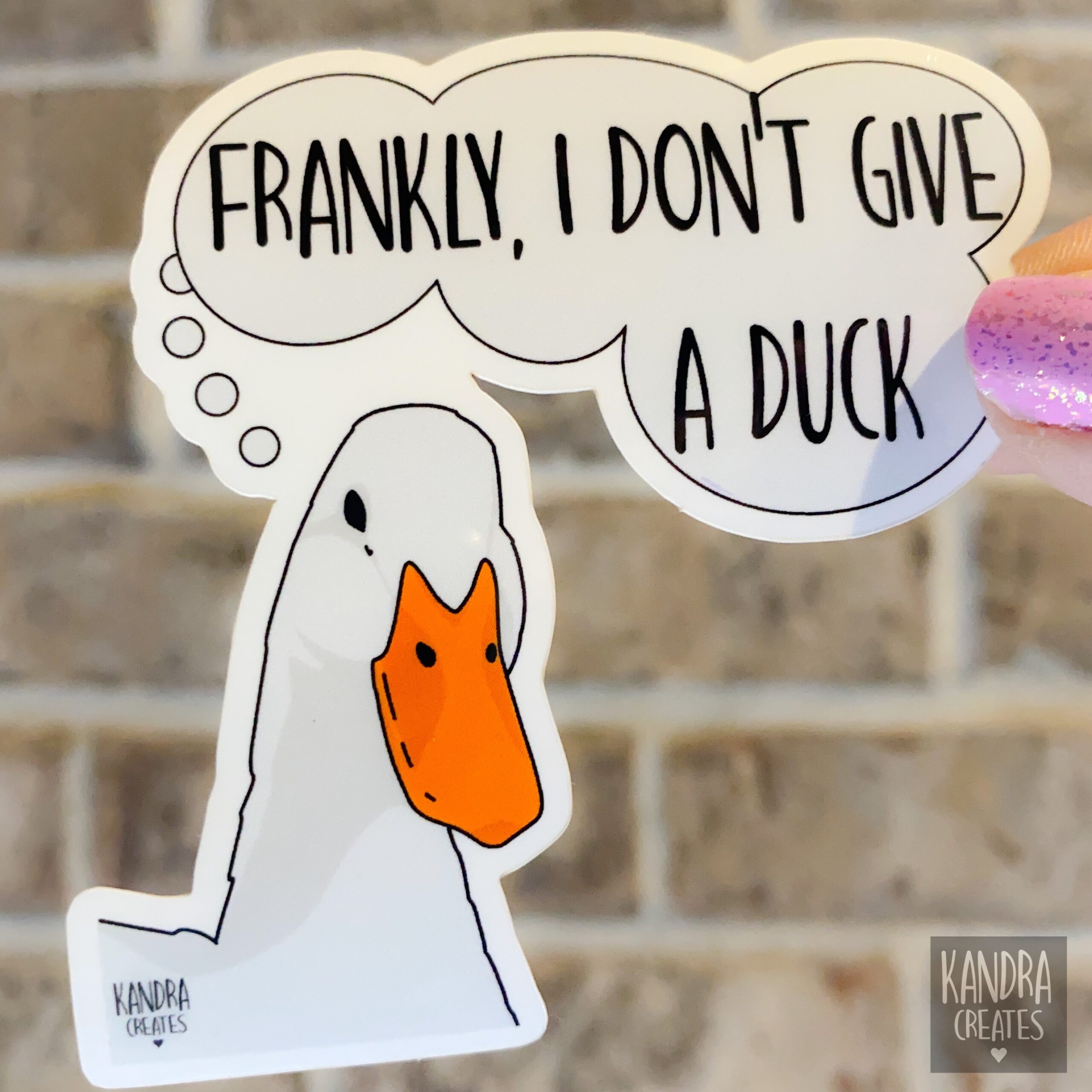 Don’t give a duck about what others think, keep waddling to your own beat. This weatherproof and waterproof vinyl sticker has a glossy finish and features a duck with the pun “Frankly, I don’t give a duck”.