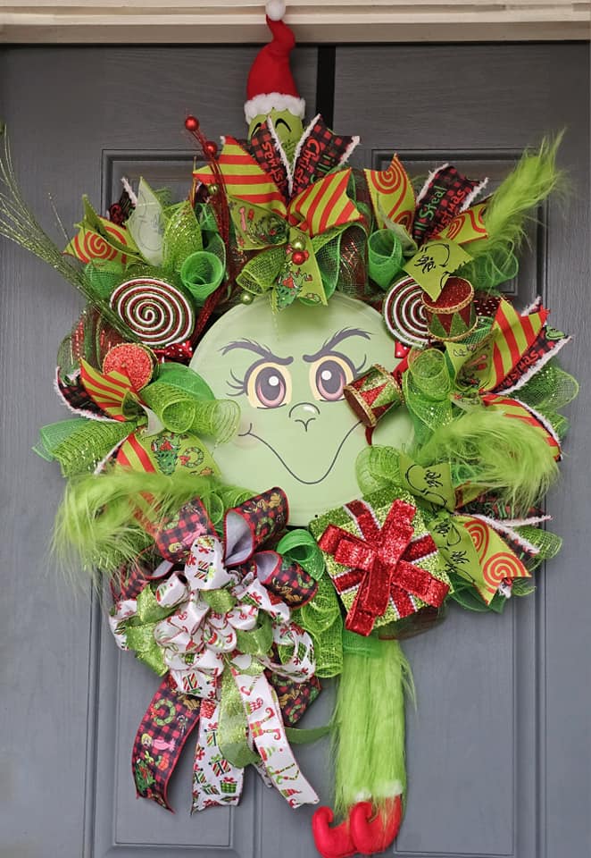 This wreath is on an 18 in frame and consits of green monster picks, signs, ribbon, and decor.