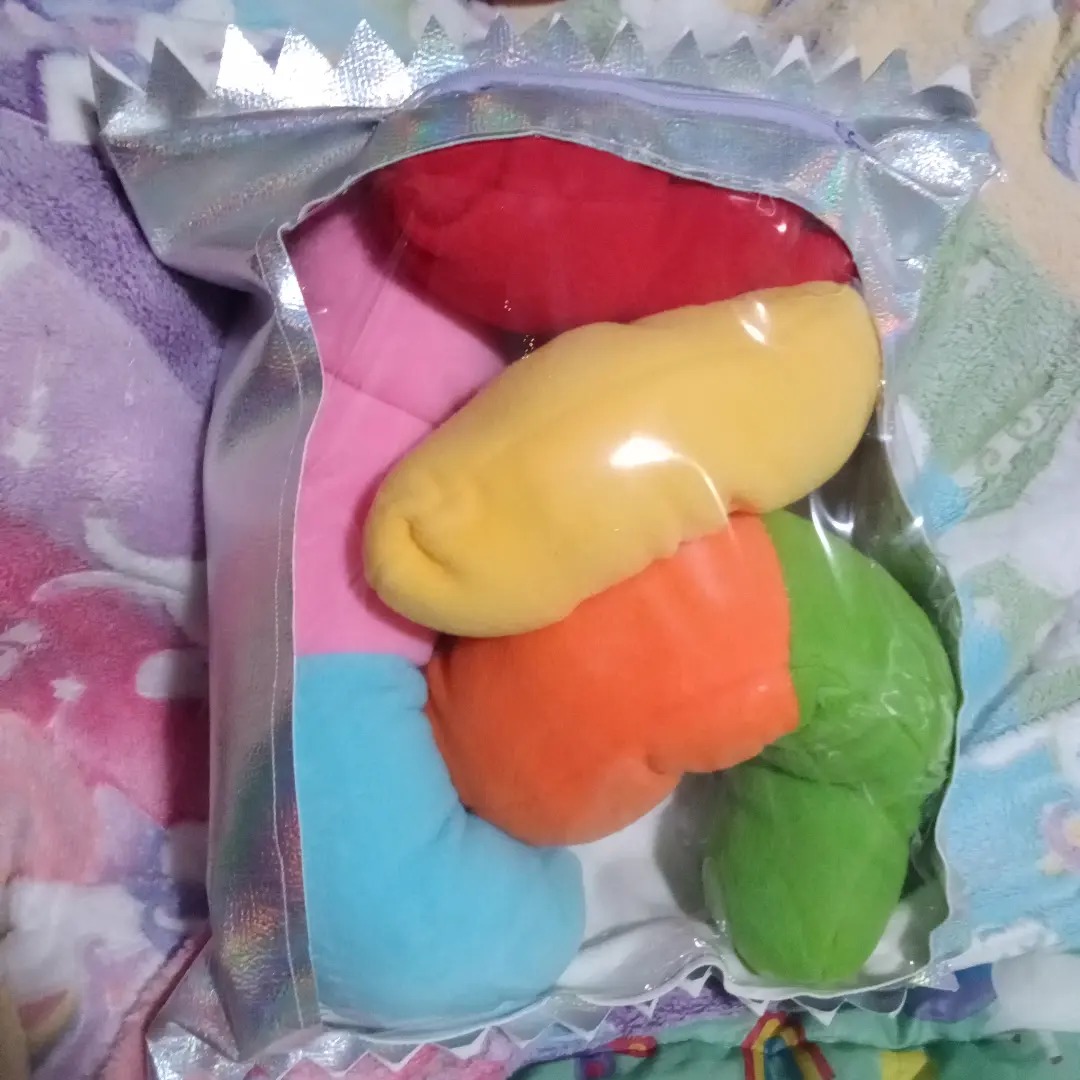 Ever wish you just had a giant bag of gummy worms, well look no further. I thought this would be a fun idea, So I hand sewed some vinyl bags with zippers and took plush fleece of colors matching actual gummy worm colors and got creative. The fabrics were hand selected and many hours of work went into making each bag of gummy worms.