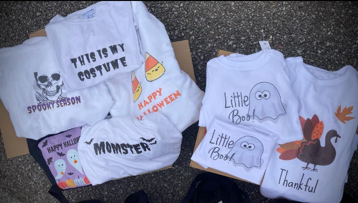 I created these shirts with heat transfer paper. The images of Pennywise and the eyeball were drawn by my niece. I printed the images she drew on heat transfer paper and put the images on shirts and sweatshirts.