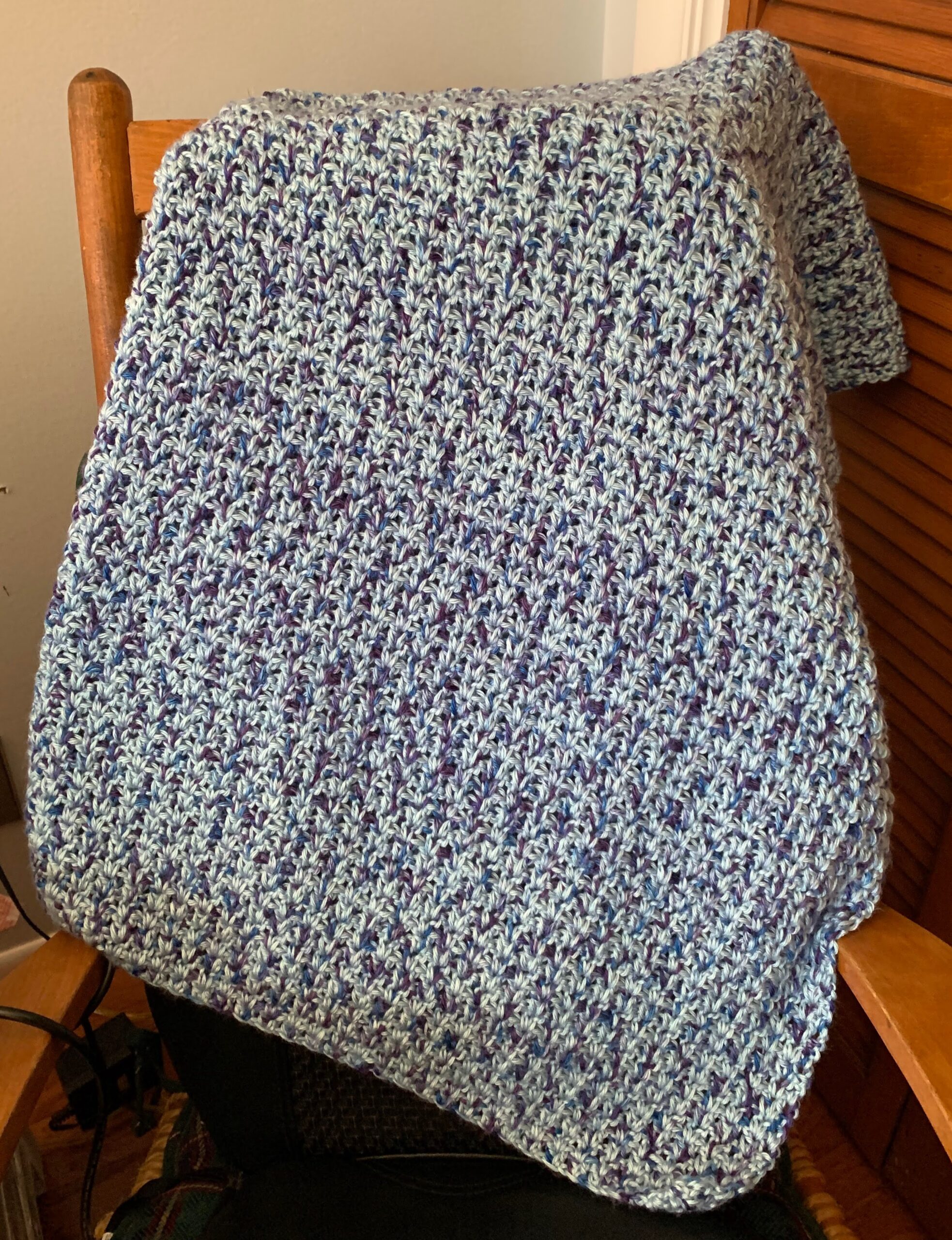 A lapghan is just an afghan that is the right size to use across your lap or throw across your shoulders. Lapghans are about half the size of an afghan. They are popular in nursing homes or just to throw across the legs to keep warm in the winter. A crochet lapghan is about half the size of a regular sized afghan or even a little smaller. Lapghans are not usually very wide but long enough for legs. Usually lapghans are about 35 × 40″ in size, but there isn’t a set rule for a standard size.