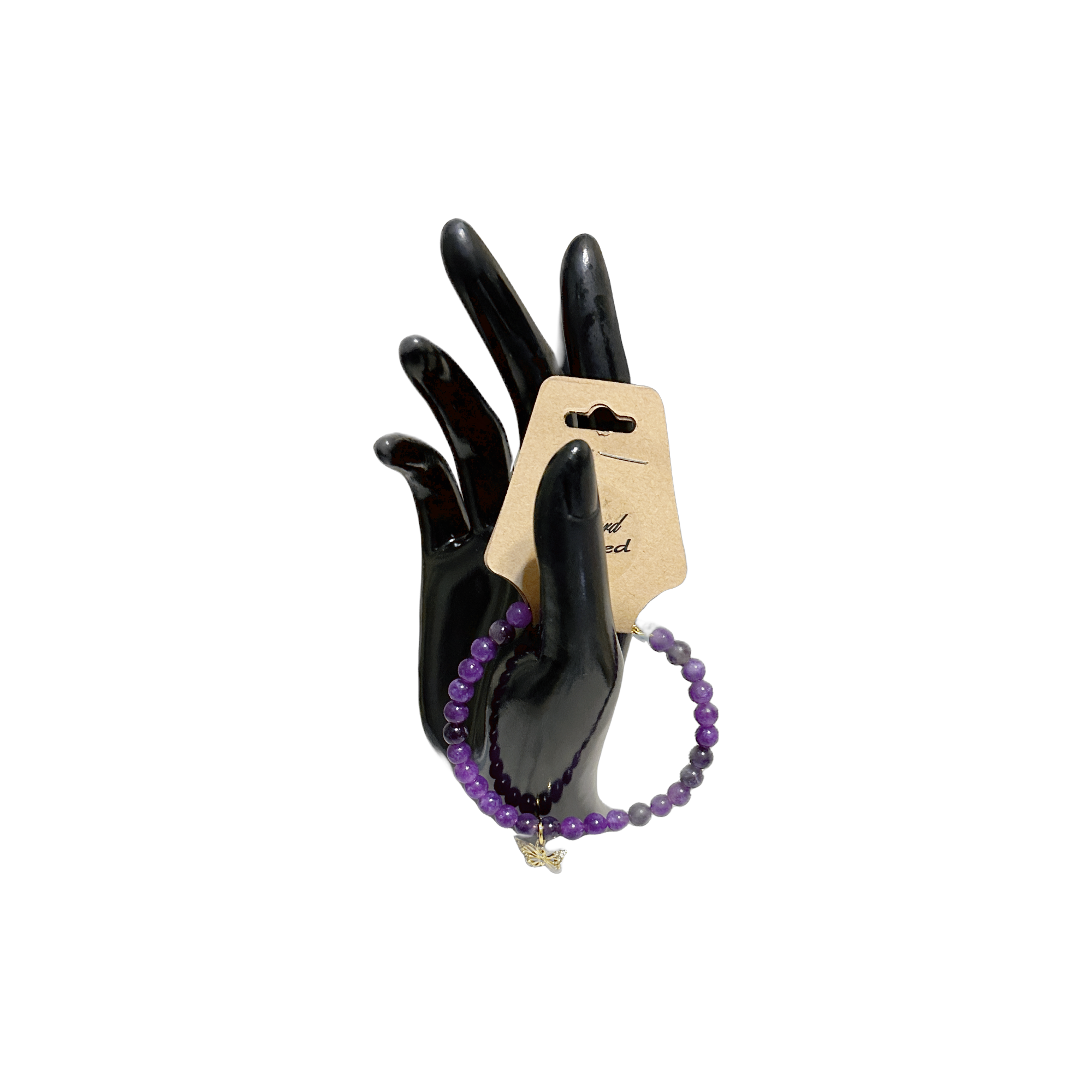 This bracelet is part of the “Lupus Warrior Collection” As a person who deals with this awful disease, I found much inspiration and hope in God as He gives me strength to do the impossible. I was once on 100% disability because the illness had taken everything from me, but today I stand strong, manage a business and run and design my own. Any disease tends to try and define a person, but no one is a disease. We are all warriors and this collection represents just that. Amethyst beads and gold butterfly charm combine in this inspiring bracelet for those battling Lupus. Both purple and the butterfly represent this illness, but they also have other meanings. Amethyst symbolizes peace while the butterfly represents hope. Together these two things stand as a reminder that God is bigger than the battles that we face. We are strong. We are warriors.