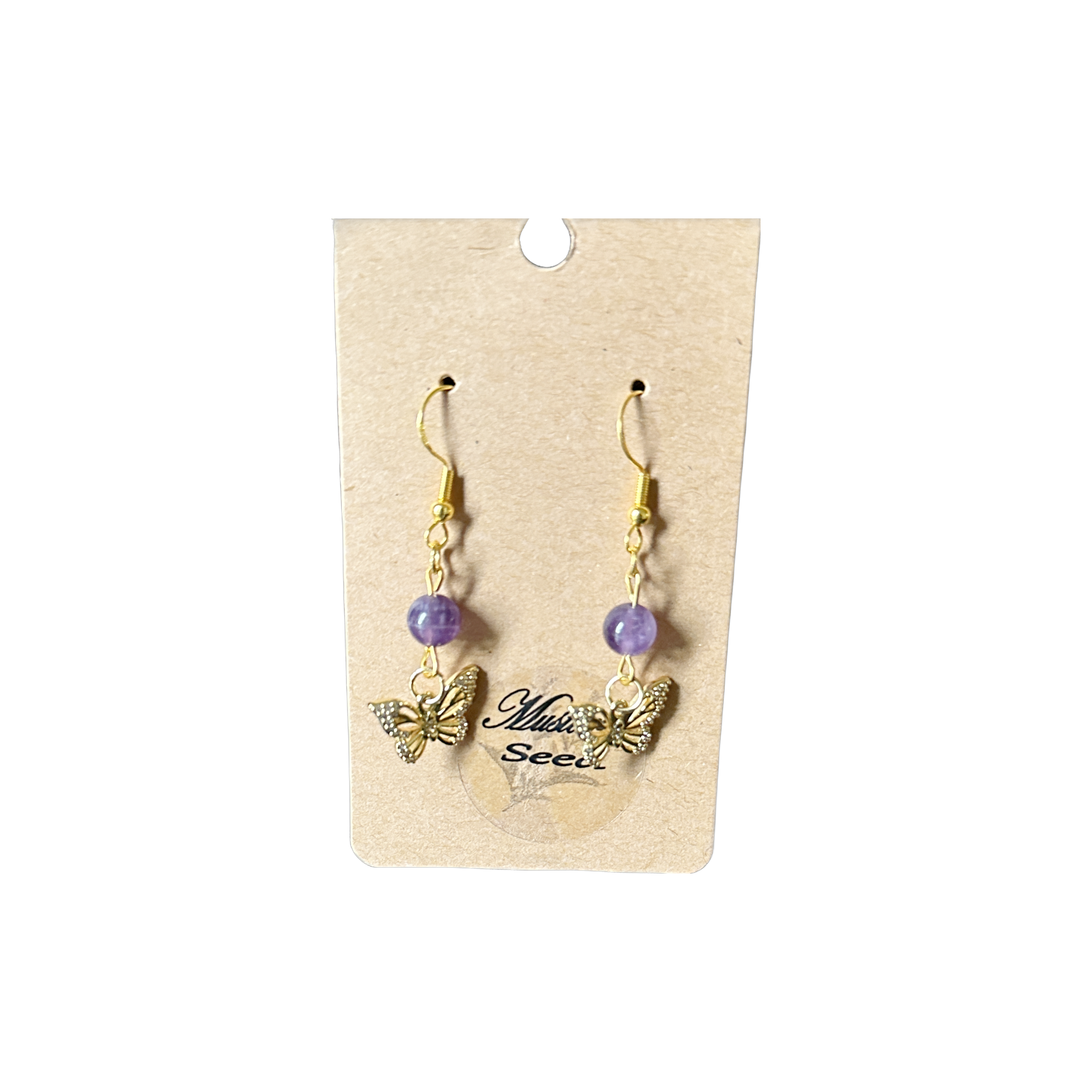 These earrings are part of the “Lupus Warrior Collection” As a person who deals with this awful disease, I found much inspiration and hope in God as He gives me strength to do the impossible. I was once on 100% disability because the illness had taken everything from me, but today I stand strong, manage a business and run and design my own. Any disease tends to try and define a person, but no one is a disease. We are all warriors and this collection represents just that. Amethyst beads and gold butterfly charm combine in this inspiring bracelet for those battling Lupus. Both purple and the butterfly represent this illness, but they also have other meanings. Amethyst symbolizes peace while the butterfly represents hope. Together these two things stand as a reminder that God is bigger than the battles that we face. We are strong. We are warriors.