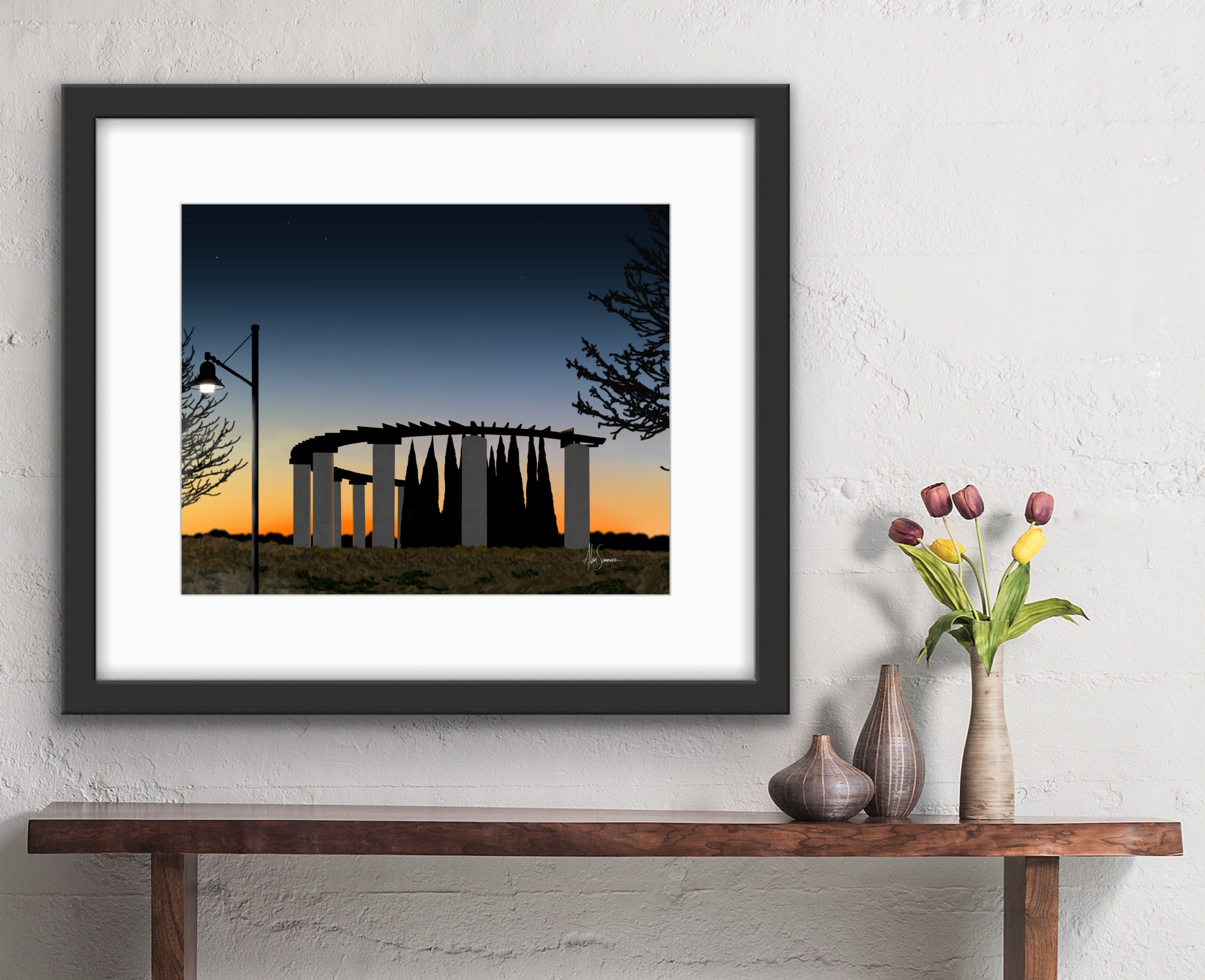 Orchards Park is one of five pieces in my Bentonville Sunsets collection. It features a dramatic view of the classic amphitheater against a gentle sunset. The light from a solitary lamppost illuminates the branches of a nearby tree. Hand-drawn digital art. Prints available in 30 x 20, 10 x 8, and 7 x 5.