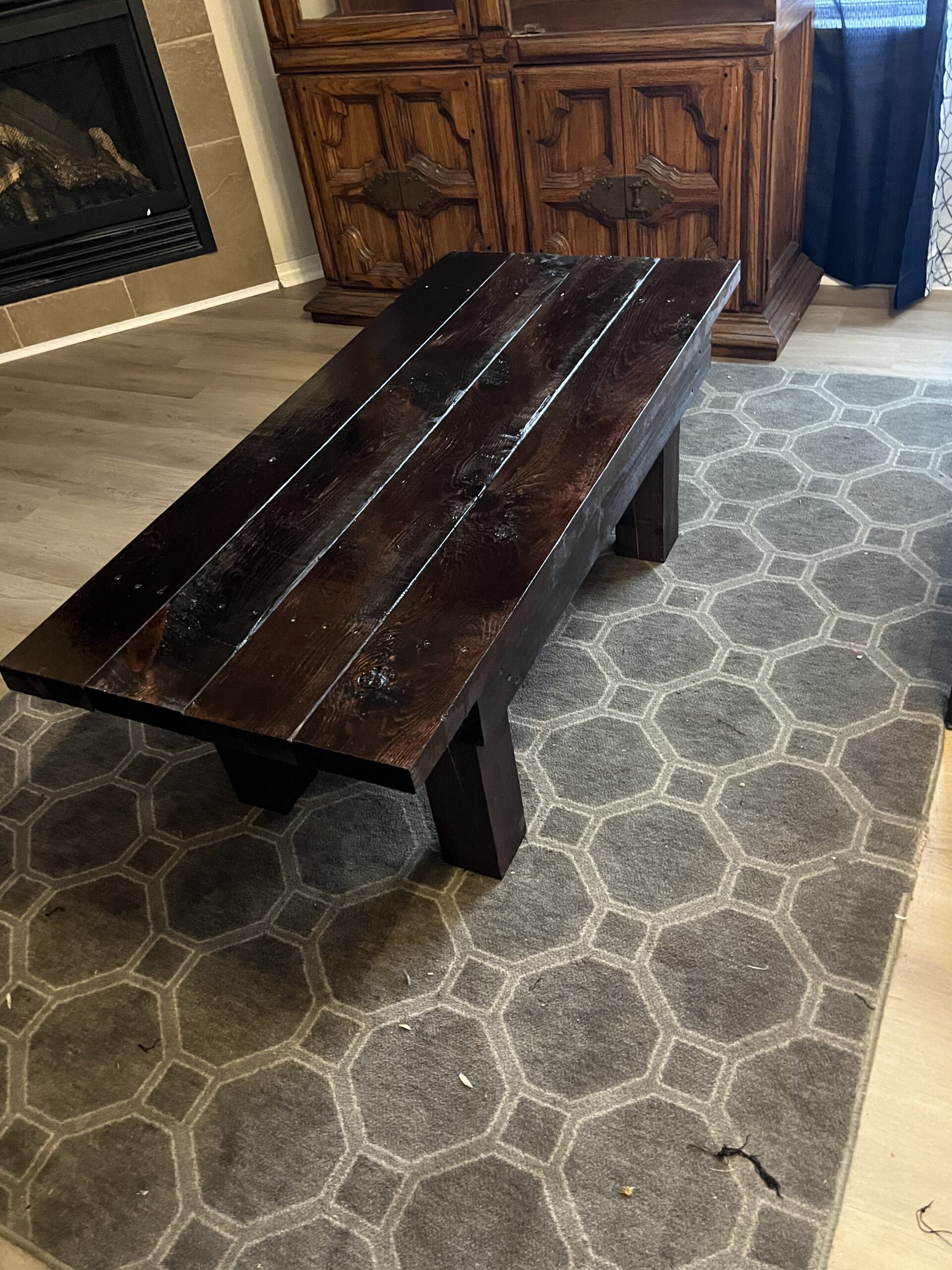 This table is new, handmade/homemade and beautiful. It is made from real lumber with a red mahogany stain and a polyurethane coat and very study and solid. This is made to be a coffee table/center table. I can also do orders for another table with a different stain. Can also deliver for a small fee. Starting at $150 obo.