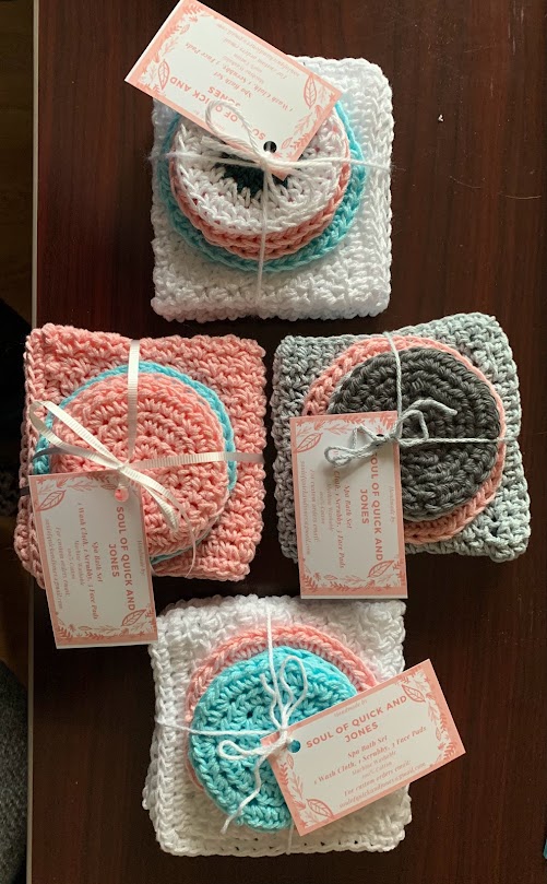1 Wash Cloth, 1 Large Scrubbie, 2 Small Scrubbies