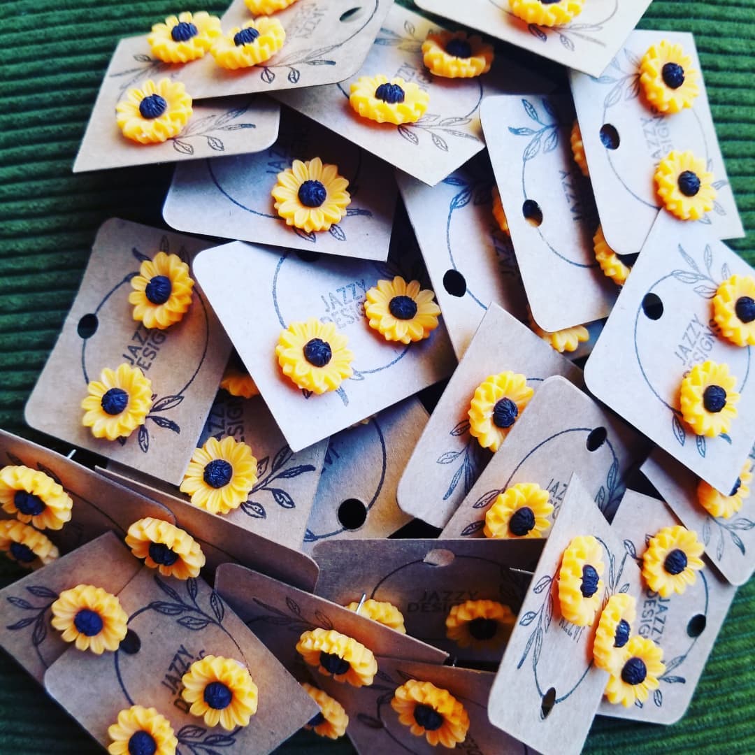 Sunflower stud earrings. Perfect for the spring/summer weather. Very lightweight.
