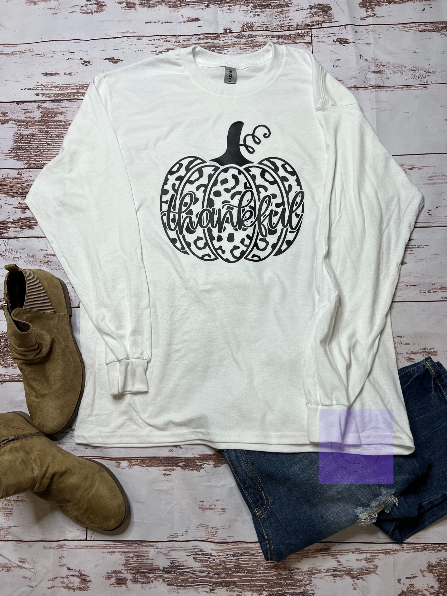 Thankful leopard print white long sleeve T-shirt unisex sizing