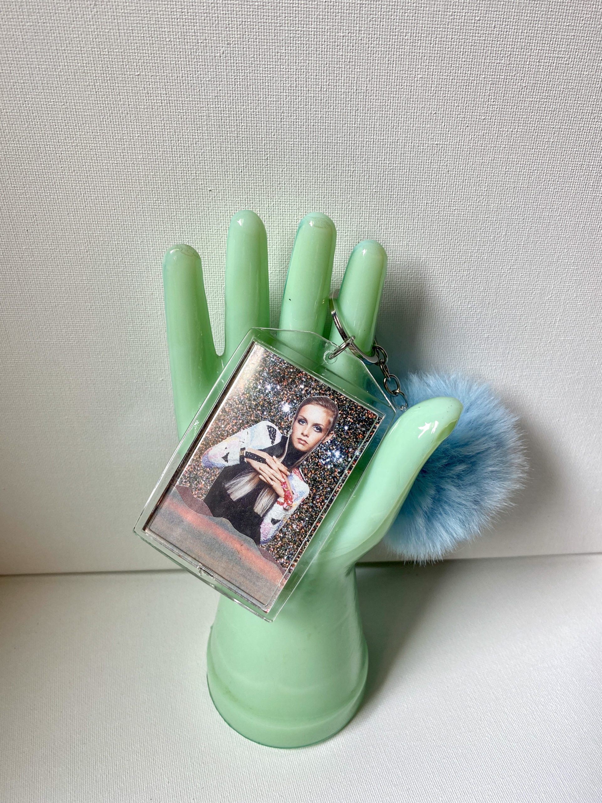 Mini (2x3in) hand-cut collage in photo holder keychain with pom (custom)